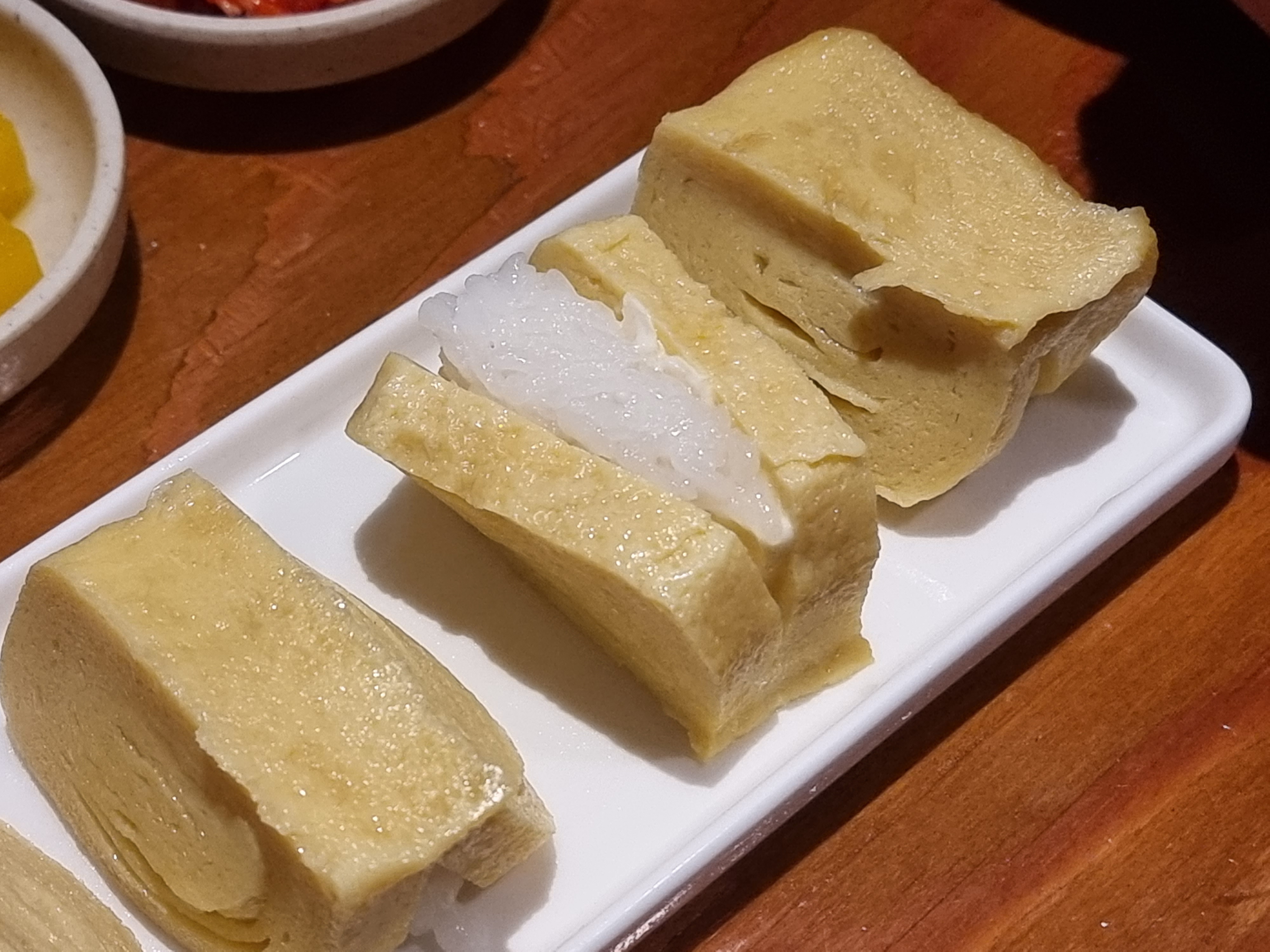 달달하고 두꺼운 계란안에 밥 조금과 마요소스가 들어가있는 초밥입니다.